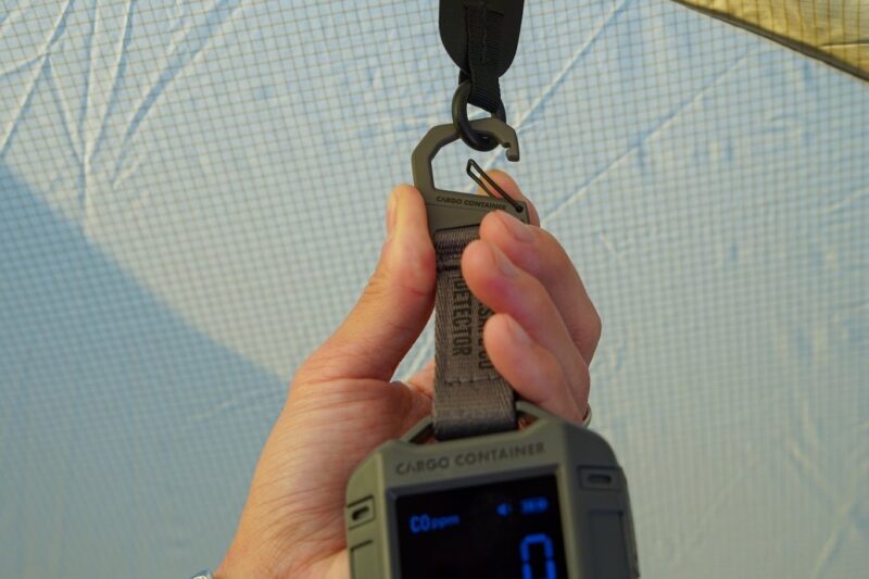 今までテントに吊るしたきり手にとることがなかった一酸化炭素チェッカー。