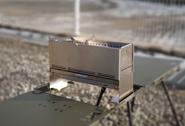 ハーフユニットサイズの組立式の二次燃料の焚き火台になっています。