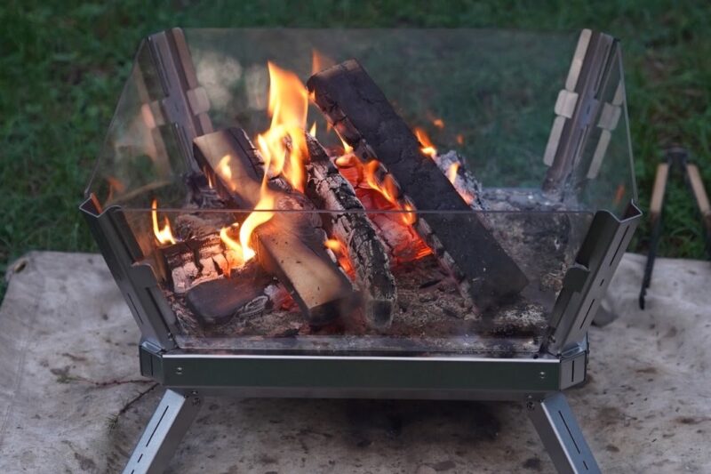 ステンレスとガラス面で作られているので、それなりの重さがありますが、その分重厚感がある焚き火台になっています。
