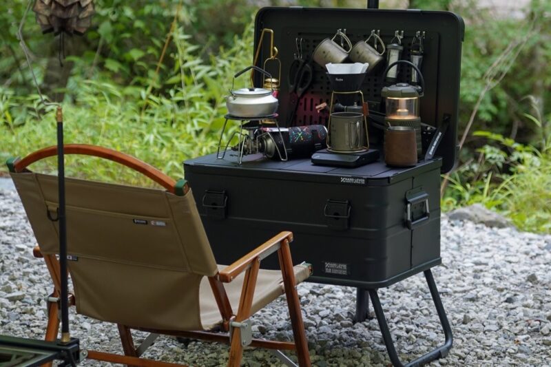 テントだけではなく、アルミコンテナや焚き火台クーラーボックスなども販売されており、クールで機能的に優れた点から話題を集めています。